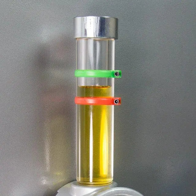 La columna es una mirilla 3D diseñada para monitorear fluidos con grandes fluctuaciones de nivel. Puede instalarse en el puerto de drenaje o en cualquier punto por debajo del nivel de aceite. Los anillos de nivel rojo y verde incluidos facilitan la monitorización del nivel entre el ralentí y el funcionamiento. Los anillos de nivel tienen un diseño a prueba de manipulaciones para evitar ajustes accidentales.